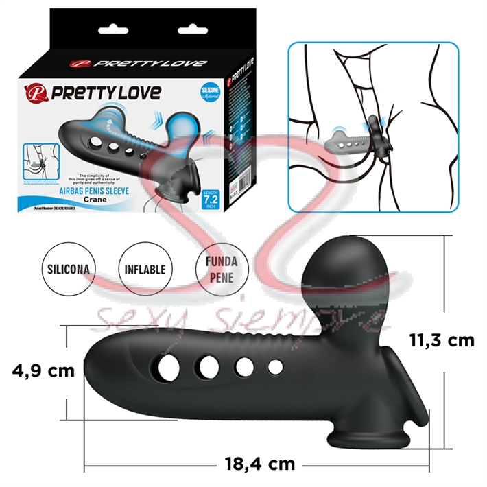 Esta funda en silicona suave y cómoda es un juguete ideal para añadir un toque extra a tu juego. El material elástico se ajustará alrededor de la base del pene y los testículos, abrazándose a la piel, atrapando la sangre en el pene y ayudando a conseguir erecciones mas grandes y duraderas, proporcionando un placer prolongado. Asimismo, en cada penetración el airbag al tocar piel contra piel, inflará el extremo en el glande brindando mayor placer para la persona penetrada. Mucho mas que interesante verdad?
