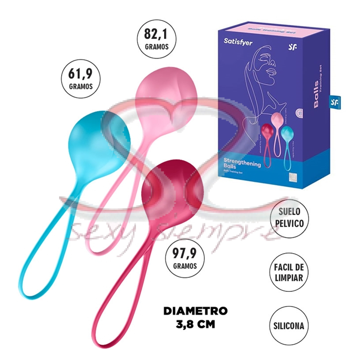 Cada una contiene un peso diferente, iniciando por el mas liviano y a medida que se va ejercitando el suelo pélvico, cambiar por la siguiente. Es SATISFYER..!!