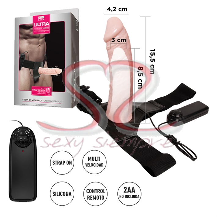 Super reforzado arnés permite una postura firme y resistente que contiene el controlador de vibraciones. El producto aumenta tamaño y espesor como así también, colabora en la erección.