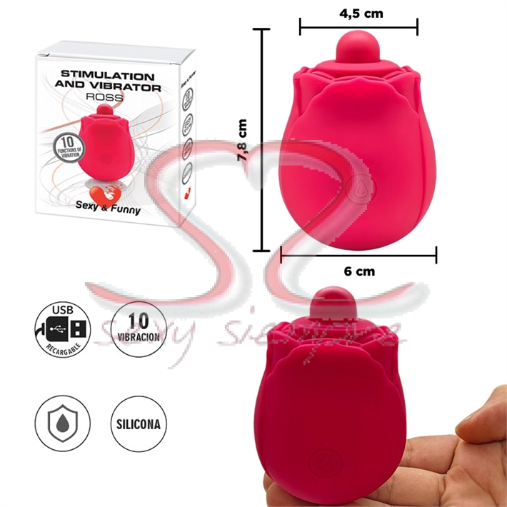 Discreto Estimulante y Vibrador con 10 funciones diferentes que conducen a orgasmos intensos. Ross Sexy Funny recargable por USB, resistente al agua, se sugiere utilizar con lubricante acuoso.